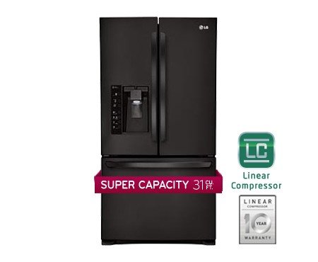 KEY FEATURES Super-Capacity (31 cubic feet) 20% more usable space* With the super capacity 31 cu. ft., refrigerator, you hae 20% more usable space* allowing you to store more food than ever before. *Compared to LG's standard width French door refrigerator. Most Shelf Space* The LG Slim SpacePlus Ice System provides the most shelf space. Helps Keep Food Fresh Smart Cooling Plus is designed to monitor and maintain conditions to help keep food fresh. 10 Year Manufacturer's Limited Warranty on Linear Compressor Peace of mind When you buy a refrigerator, you don't want to worry that it won't last.